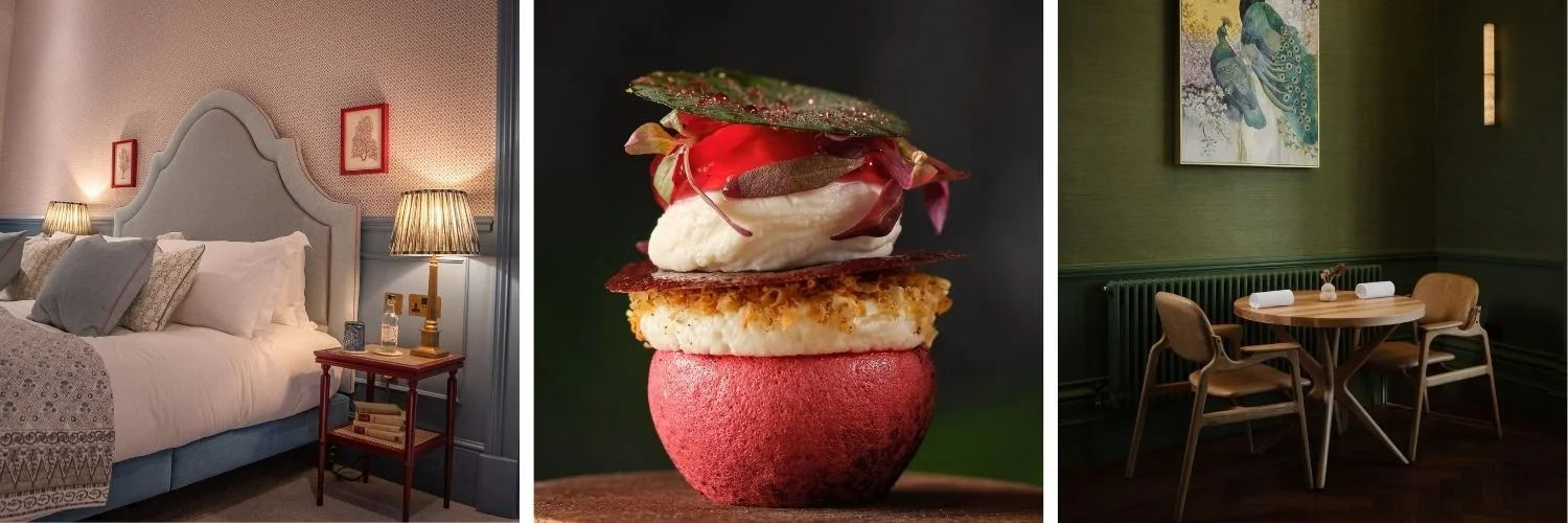 Housed within the Grade II-listed Leonardslee House, Restaurant Interlude offers an intimate 26-cover dining room with panoramic views across the estate. Guests can extend their visit with an overnight stay in one of the house’s ten individually designed bedrooms, creating a complete countryside retreat.